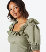 The perfect addition to your everyday outfits. The square neckline gives an urban edge, while the puff sleeves and ruffle collar design give it a feminine appearance. This versatile piece looks well with wide-leg pants and wedge sandals for stylish brunch attire. Wear it with your favourite denim jeans and white trainers for a more relaxed vibe. Perfect for informal outings with friends or family get-togethers, the fitting waist highlights your shape. For days when it’s chilly, wear it layered with a light cardigan or by itself for an effortlessly chic look. Must-have for a woman who values fashion, functionality, and comfort in her everyday attire!